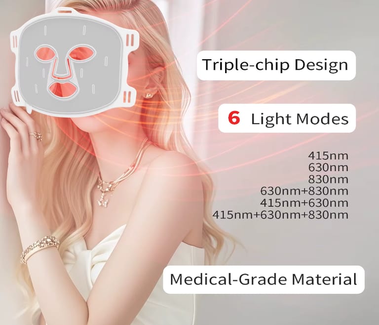 Blue Light (460nm): Targets acne bacteria, controls oil production, and prevents and reduces breakouts.